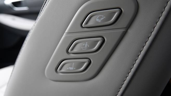 조수석 시트 옆 부분에 3개의 버튼이 있다. 조수석을 밀고, 접고, 누일 수 있는 버튼이다. 쇼퍼드리븐카의 오너석에 해당하는 뒷좌석 우측 공간을 최대한 넓게 만들 수 있다. 필요하다면 쇼퍼드리븐카로 사용할 수도 있겠다. 차급을 뛰어넘는 편의 장비다.