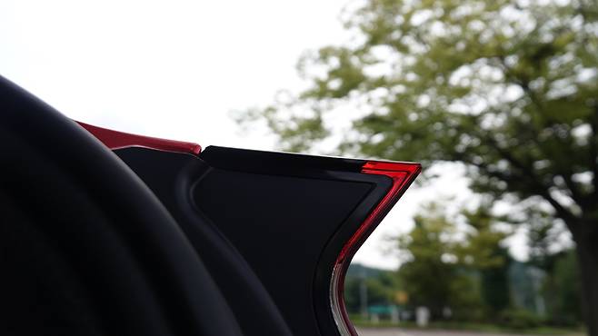 리어 스포일러에 좌우에 각 6개씩 모두 12개를 배치한 에어로 핀이 보기에 거슬린다. 매끈한 피부에 물집이 잡힌 것처럼 보여서다. 공기 흐름을 잡아줘 연비나 소음에 긍정적인 효과를 기대할 수 있을지 모르겠지만 시각적으로 거슬린다. 없어도 좋겠다.