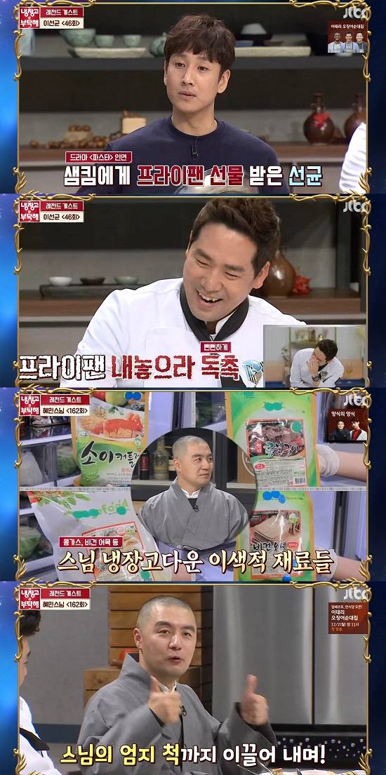 이선균은 드라마 '파스타'로 인연을 맺은 샘킴에 대한 폭로를 이어갔다. 그는 "드라마 끝나고 프라이팬을 주더니 나중에 다른 예능에서 돌려달라고 하더라. 이런 걸 보면 진짜 연예인 다 됐다는 증거다. 오늘 그렇게 아끼는 팬에다가 요리를 해달라"고 말해 폭소를 자아냈다.