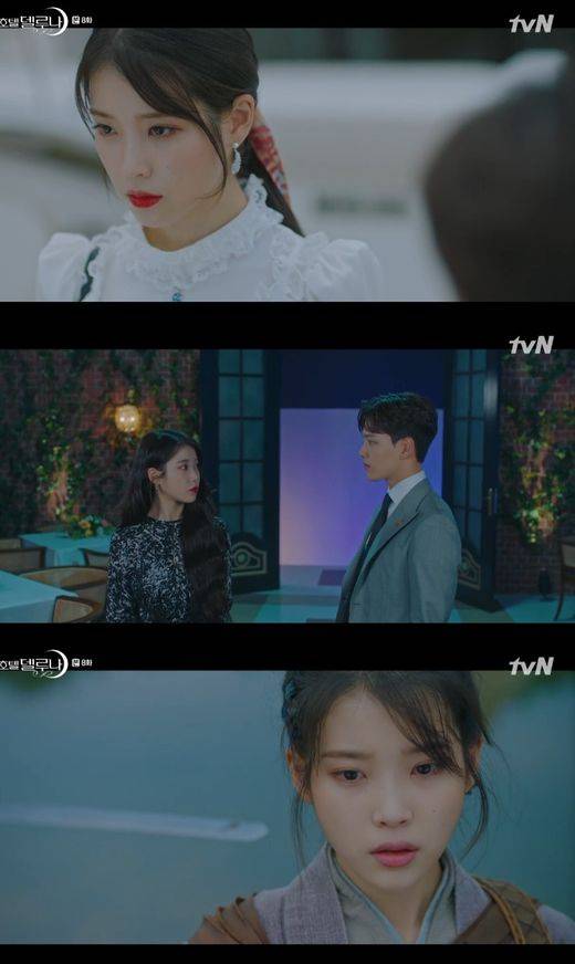 이날 ‘호텔 델루나’에서 장만월은 구찬성(여진구 분)을 부르며 걸어오는 이미라(박유나 분)를 보고 충격 받았다. 이미라가 과거 영주성 공주 송화(박유나 분)와 똑같은 얼굴이었던 것.