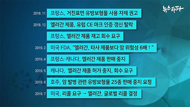 올해 2월 미국 식품의약국(FDA)가 ‘엘러간의 바이오셀 거친 표면 보형물이 BIA-ALCL을 유발할 위험성이 다른 업체 동종 제품의 위험성의 약 6배’라고 경고했다. 지난 4월 프랑스 ANSM과 캐나다 보건국(Health Canada)은 엘러간 제품 판매를 중지시켰다. 아시아권에서는 싱가포르가 5월 10일 엘러간 제품 판매 금지를 결정했다. 호주도 지난 6월 엘러간 제품을 포함한 유방 보형물 25종의 판매 중지를 사전 검토하기에 이른다.