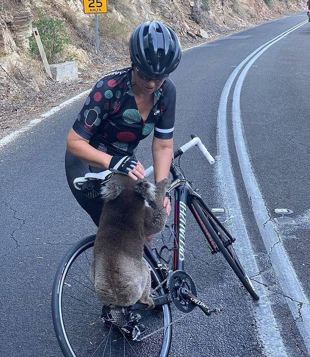 사람이 무섭지 않은지 오히려 코알라가 허슬러 쪽으로 걸어오더니 그녀의 자전거를 마치 나무에 오르듯이 올라 타는 것이었다. 그리고는 허슬러의 자전거에 부착된 물병의 물을 마시려는 듯했다. 당시 애들레이드의 온도는 40도에 산불이 휩쓸고 지나간 상태로 너무나 목이 마른 코알라가 지나가는 사람에게 물을 구걸한 것.