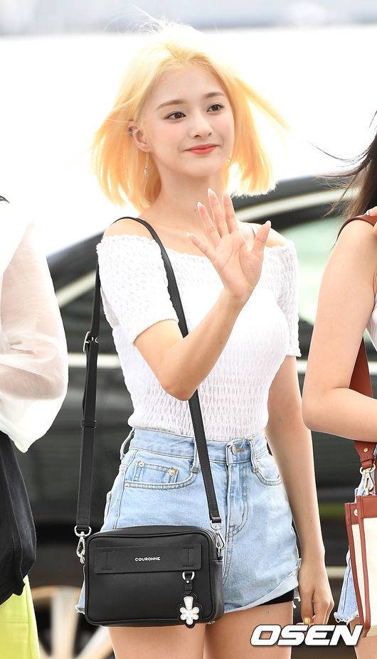 프로미스나인 이나경이 출국장으로 향하며 팬들과 취재진을 향해 포즈를 취하고 있다. /dreamer@osen.co.kr