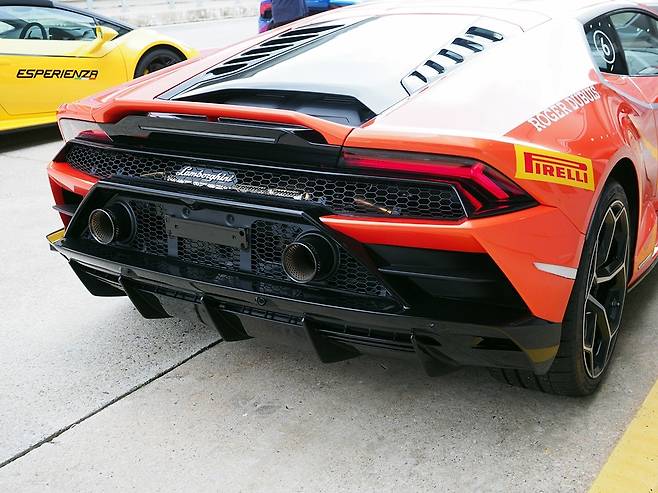 또한, 네 발을 노면에 꾹꾹 짓누르며 달리는 모습이 유독 흥미롭다. 코너 진입속도를 높여도 어지간해선 타이어의 비명 소리를 듣기 힘들다. 우라칸 퍼포만테보다 다운포스를 높인 결과다. 표준 장비인 카본-세라믹 브레이크는 10랩 이상 달려도 일정한 답력을 유지해 만족스러웠다. 순수 기계장치가 주는 까마득한 한계와 비현실적 속도에 이날 내 간은 배 밖으로 나왔다.