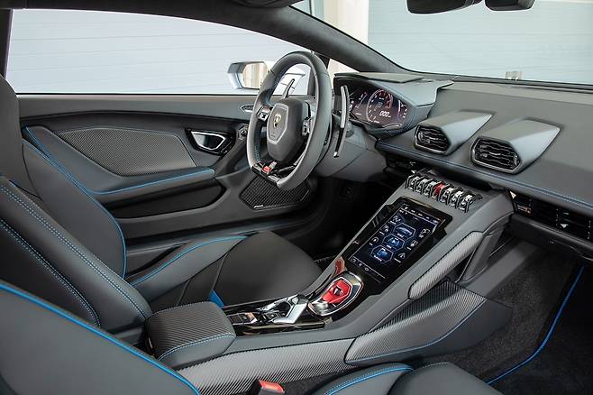 람보르기니는 시동 거는 과정부터 특별하다. 센터페시아 아래 빨간 뚜껑을 찾으면 된다. 전투기 스위치 다루듯, 위로 젖혀 스타트 버튼을 꾹 눌러야 한다. 그 위론, 새로운 8.4인치 세로형 디스플레이를 마련해 눈길을 끈다. 공조장치와 오디오, 내비게이션 등을 스마트폰처럼 터치로 주무를 수 있다. 또한, 알칸타라 또는 가죽을 조합해 총 8가지 인테리어 중 고를 수 있다.