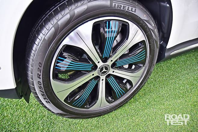 GLC를 바탕 삼았지만 앞뒤에서 GLC를 엿보기 어렵다. 하지만 옆모습에서 GLC 분위기가 짙다. 대신 높이는 GLC 쿠페(1,635㎜)보다 낮은 1,624㎜다. 휠 디자인은 EQ 콘셉트 시절과 같지만 역조가 없어 평평하다. 여기에 앞 235/50 R 20, 뒤 255/45 R 20 피렐리 스콜피온 베르디 타이어를 신었다.