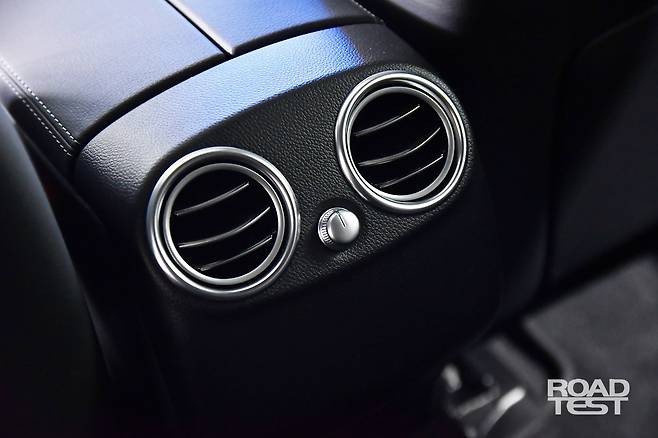 뒷자리가 배터리 때문에 좁지 않을까 걱정했지만 넉넉했다. 키 178㎝인 기자가 앉아보니 앞좌석과 무릎 사이에 주먹 한 개 반 정도 들어갔다. 대신 높이가 GLC 쿠페보다 낮아 헤드룸은 살짝 답답하다. 뒷좌석 편의사양으로 송풍구도 있는데 구멍 뚫은 정도에 그쳤다. 또한, 도어 트림의 스위치로 시트 열선을 3단계로 조절 가능하다. 바로 옆에 버튼이 하나 더 있는데, 이건 누를 수 없는 소위 ‘멍텅구리 버튼’이다.