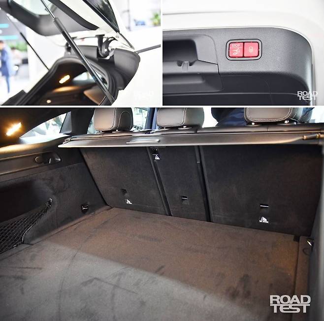 누가 열어놓은 트렁크를 보고 순간 눈을 의심했다. 바로 얇은 가스 리프트 때문. 그러나 엄연히 전동식이다. 문을 열고 닫을 때 ‘쉬이익’ 소리만 들으면 영락없는 수동식이지만 트렁크에 닫힘 버튼이 있고 스스로 잘 열고 닫는다. 트렁크 용량은 약 500L다.