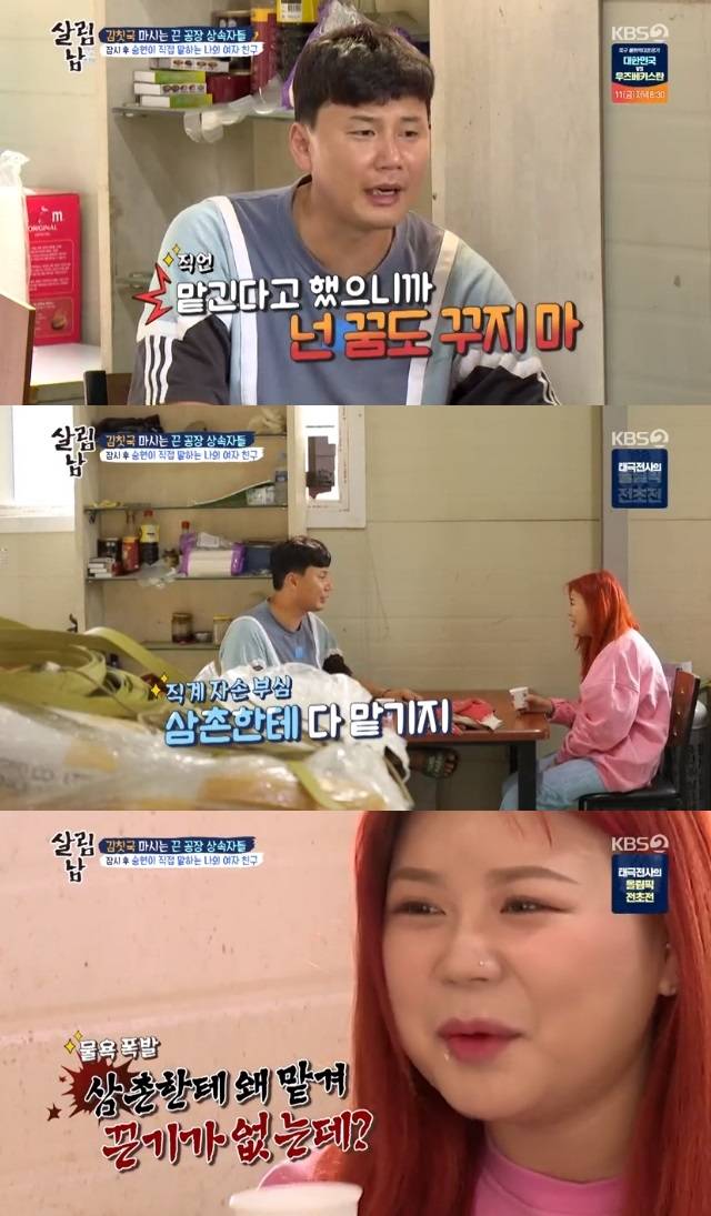 그렇게 삼촌조카 사이 공장 상속전쟁이 시작된 시각 정작 공장주인 김승현 부친은 아들의 연애고백에 “정 안되면 공장을 팔아서라도 집을 해 주겠다”고 신혼집을 약속하는 모습으로 웃음을 줬다. (사진=KBS 2TV ‘살림하는 남자들 시즌2’ 캡처)