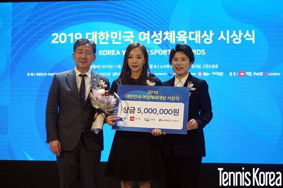 테니스계 인사가 여성체육대상에서 수상한 것은 지난 2015년 공로상을 받은 이덕희 여사 이후 김일순 원장이 두 번째다.