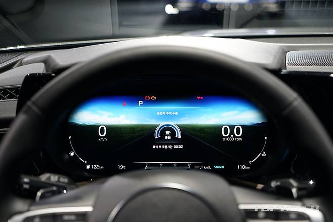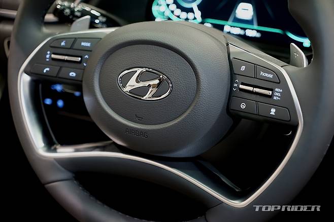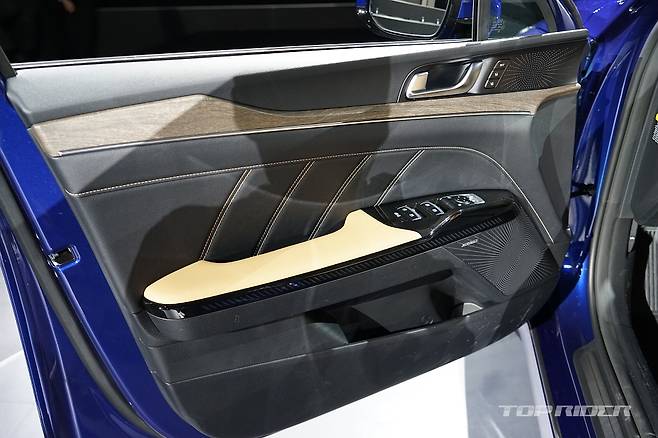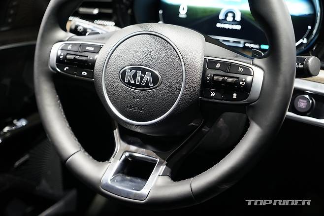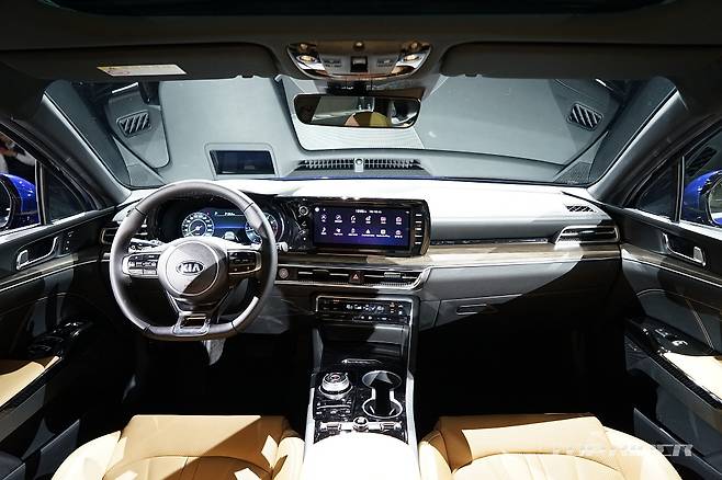 실내는 K5와 쏘나타 모두 운전자 중심의 디자인을 채택했다. 10.25인치 디스플레이를 비롯해 센터페시아가 운전자를 향해 있다. 12.3인치 디지털 계기판도 동일하게 적용됐으나 K5는 테마형 클러스터를 지원한다. 또한 신규 GUI를 적용해 새로운 분위기를 나타낸다.