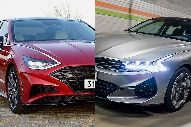 두 모델은 옵션에도 일부 차이를 보인다. 9개월 가까이 늦게 출시된 신형 K5에는 음성인식 제어 시스템, 터치식 공조기, 12.3인치 테마형 디지털 계기판이 추가됐다. 하지만 쏘나타에는 나파가죽시트, 후면 전동식 커튼, 레인센서가 적용돼 미묘하게 고급 모델로 보여진다.