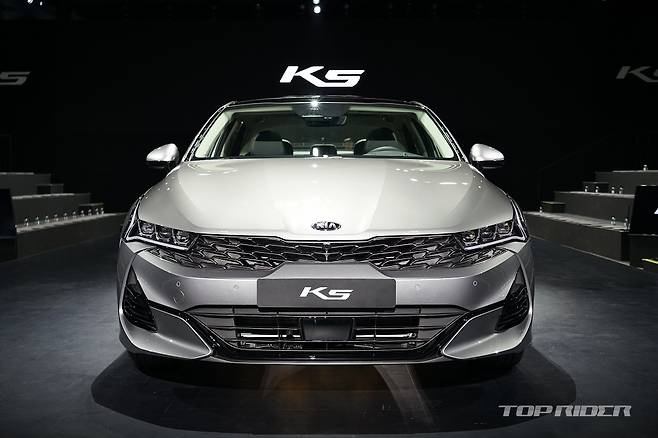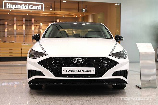 신형 K5의 전면에서 그릴과 헤드램프는 얇고 기다란 형태로, 심장박동을 형상화시킨 주간주행등이 적용됐다. 반면 쏘나타는 센슈어스 기준 파라메트릭 쥬얼 패턴 그릴과 히든라이팅 주간주행등이 적용된다. 엠블럼은 K5는 보닛 상단, 쏘나타는 그릴에 위치해 다르다.