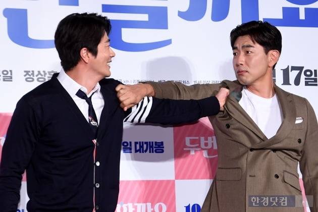 배우 권상우, 이종혁이 17일 오전 서울 자양동 롯데시네마 건대입구에서 열린 영화 '두번할까요'(감독 박용집, 제작 (주)영화사 울림) 제작보고회에 참석해 포토타임을 갖고 있다.