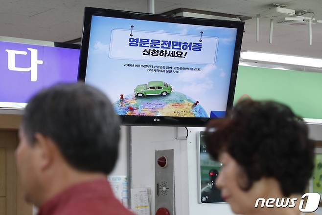 (대전=뉴스1) 주기철 기자 = 영국, 싱가포르, 캐나다, 호주 등 세계 33개국에서 운전 할 수 있는 '영문 운전면허증' 발급이 시작된 16일 대전 동구 대전운전면허시험장에 영문 운전면허증 발급관련 안내가 모니터에 나오고 있다. 경찰청과 도로교통공단에 따르면 이날부터 경찰서 민원실과 전국 27개 운전면허시험장에서 영문 운전면허증을 발급한다. 영문 운전면허증 뒷면에는 성명, 생년월일, 면허번호, 운전 가능 차종 등 면허정보가 영어로 적혀 있어 해외에서도 사용할 수 있다. 2019.9.16/뉴스1
