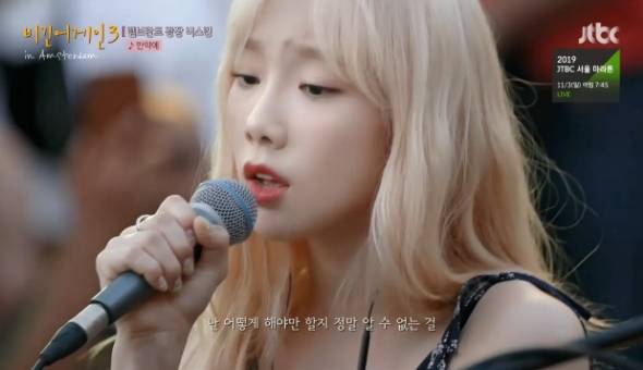 이후 노래가 시작됐고, 태연의 아름다운 목소리에 관객들은 눈물까지 흘렸다.(사진=JTBC '비긴어게인3' 캡처)