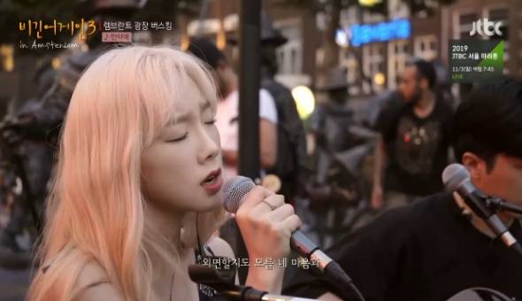 이날 멤버들은 렘브란트 광장에서 버스킹을 시작했다. 특히 태연은 '만약에'를 선곡했다.