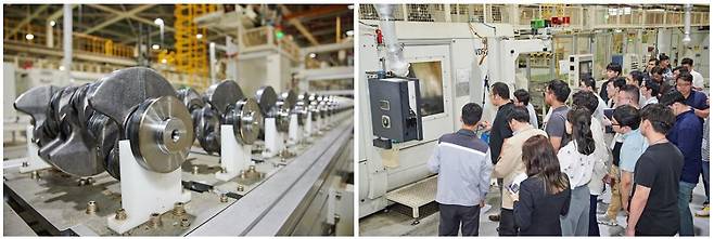 크랭크축 가공 과정은 자세히 엿볼 수 있었다. 하나의 쇳덩어리에 불과하지만, 그 과정은 공장 건물을 ‘W’자로 왕복할 만큼 많다(19공정). 거친 주물 상태로 들어와 거대한 톱날로 여러 차례 갈고, 세척 과정을 반복하다 보면, 어느새 반짝이는 새 부품으로 거듭난다. 부품 하나하나에 들어가는 정성을 보면 2만 개 부품이 하나로 뭉친 엔진이 얼마나 대단한 물건인지 새삼 깨닫는다.