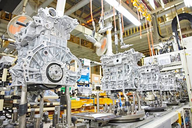 엔진 몸체(엔진 블록)가 엔진으로 태어나기까지 거쳐야 할 공정은 대략 70여 개. 이중 사람 손길이 반, 기계 조립이 반이다. 자동화율 50%다. 인상 깊던 점은 중간중간 자리 잡은 품질 검사 장비다. 약 2만 개 부품이 어우러지는 엔진이기에, 수시로 첨단 장비가 조립 품질을 검사한다. 덕분에 불량률은 100만 대 중 단 50~100대 수준에 그친다.