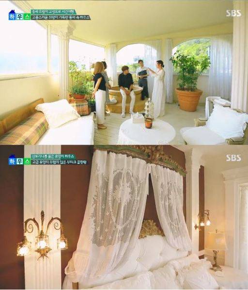 그리스 신전을 연상케 하는 2층 테라스에 대해 레이나는 “겨울에 바깥에서 뭘 먹으면 춥지 않나. 그래서 테라스에서 크리스마스 파티라던가 각종 파티를 즐길 수 있게 만들었다”고 설명했다.