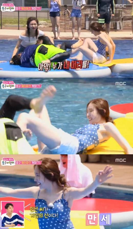 이날 ‘호구 워터파크’가 개장한 가운데 출연자들은 물 위에서 힘 대결을 벌였다.