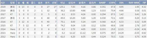 | ▲ 한화 장시환 2012시즌 이후 주요 기록(출처=야구기록실,KBReport.com) |