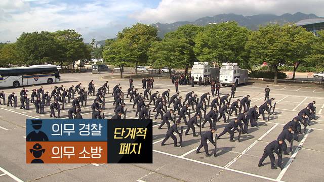 의무경찰은 2023년까지 완전히 폐지하는 쪽으로 결론이 났고, 해양경찰과 의무 소방도 같은 방향으로 논의가 이뤄지고 있습니다.