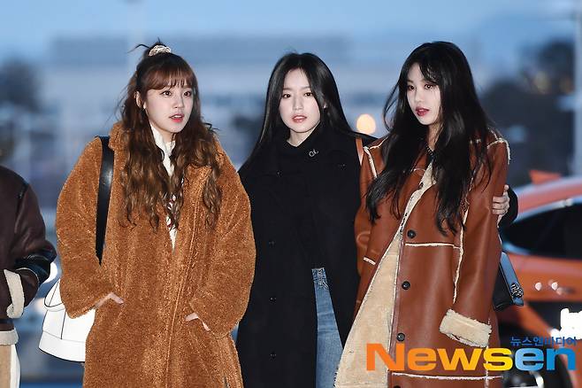 멤버 우기, 슈화, 수진이 대만 타이베이로 출국하고 있다.