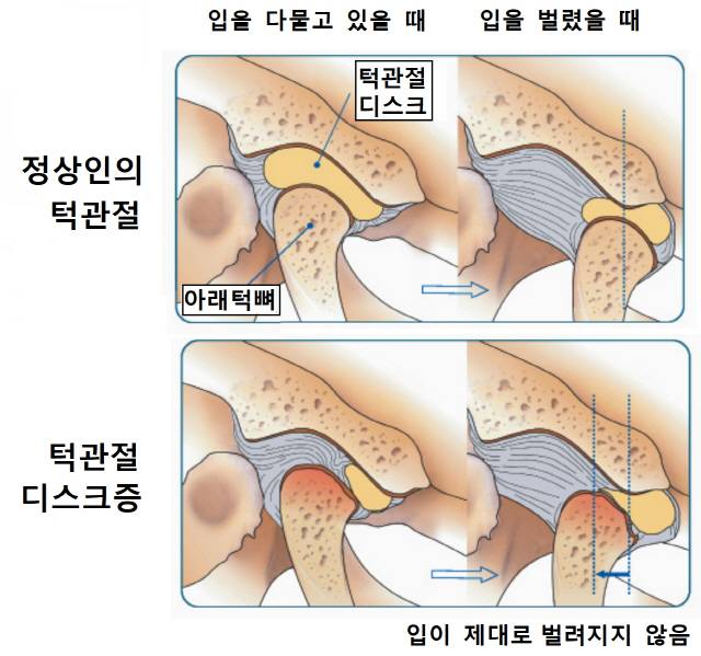 # 고등학생 때부터 왼쪽 턱관절 통증에 시달려온 22세 남성 A씨. 치과의원에 다녔지만 증상은 악화됐고 CT 검사에서 턱관절뼈 이상이 발견되지 않아 원인을 모른 채 지내왔다. 하지만 MRI 검사를 받았더니 디스크가 원래 위치에서 크게 벗어나 있고 왼쪽 턱관절 내부에 오랜 염증으로 삼출물이 고여 있는 게 확인돼 턱관절 디스크증이라는 진단을 받았다. 이후 잠을 잘 때 마우스피스처럼 생긴 구강장치(스플린트)를 끼는 등 보존적 치료로 통증이 많이 줄었다.