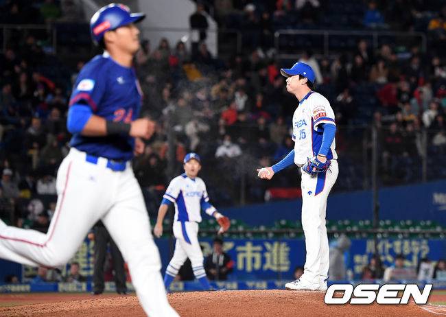 9회초 1사에서 한국 문경찬이 대만 린저슈엔에게 볼넷을 허용하고 있다. /youngrae@osen.co.kr