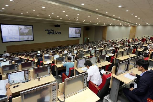 중고차 경매는 대부분 사설 경매장에서 이뤄집니다. 이곳에 모인 입찰자는 서로 가격 경쟁을 하다 최고가를 부른 이가 낙찰을 받습니다. 그러나 TV 속 미술품 경매 장면과는 조금 다른 분위기입니다. 수많은 중고차가 줄지어 공개됩니다. 때문에 찰나의 순간에 주인이 정해지게 됩니다.