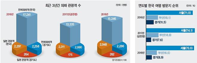 일본의 수출보복 조치로 인한 ‘반일(反日) 불매운동’이 한 달 넘게 한반도를 뜨겁게 달구고 있다. 활화산처럼 폭발한 ‘NO 재팬’이다. 지난달 초부터 시작된 일본 아베 정권 규탄운동은 일본 불매운동을 넘어서 국내 관광·여행업계에도 직격탄을 날렸다. 지난해 한국을 찾은 일본 관광객은 294만명. 전국 지자체 가운데서도 경기도는 일본인들이 가장 많이 찾는 지역 ‘톱3’에 손꼽힌다. 하지만 ‘아베 정권 규탄 운동’의 최선봉에 선 이재명 경기도지사와 유동규 경기관광공사 사장은 일본 관광객 유치를 위한 현지 광고, 세일즈콜 등 일본 관광마케팅을 당분간 전면 중단하기로 결정했다. 사실상 일본 관광객 유치 포기 선언이다.