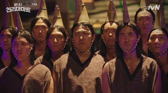이처럼 1회부터 코믹한 설정과 폭소만발 분장을 자랑하며 원작을 능가한 재미를 선사한 '쌉니다 천리마마트'. 한 시청자는 "웹툰 보고서 드라마로 만들기 쉽지 않다고 생각했는데 예상보다 훨씬 잘 살렸다. 마지막에 김병철 씨 해바라기 보고 빵 터졌다"는 소감을 전했다. 또 다른 시청자 역시 "진짜 너무 재밌었다. 얼마만에 이렇게 웃어본지 모르겠다"고 극찬했다.(사진=tvN 새 금요드라마 '쌉니다 천리마마트' 캡처)