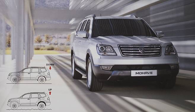 모하비를 더 특별하게 만들었던 기능이다. 뒤쪽 서스펜션에 철제스프링 대신 압축공기를 넣은 에어스프링을 사용해 차고를 조절했다. 험로 주행 시 뒤쪽을 40㎜ 들어 올릴 수 있었고, 짐을 실을 땐 40㎜ 낮출 수도 있었다. 또 짐을 싣거나 사람이 가득 탔을 때에도 뒤쪽이 처지지 않도록 높이를 맞춰주는 역할도 했다. 역시 최고사양인 KV300부터 누릴 수 있었다.