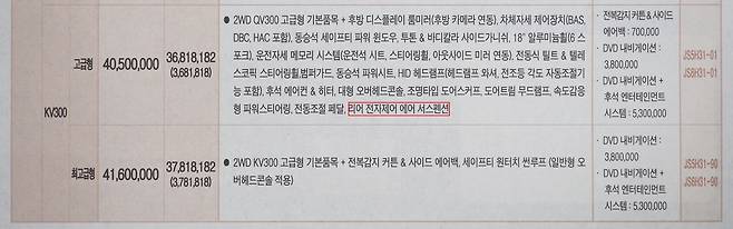 이 밖에도 옛날 모하비는 지금은 사라진 다양한 장비를 품고 있었다. 후진 시 후방카메라 영상을 룸미러로 띄우는 ‘후방 디스플레이 룸미러,’ 겨울철 와이퍼 얼음을 녹이는 ‘와이퍼 결빙 방지 장치,’ 냉각 기능이 들어간 ‘2단 센터콘솔,’ 헤드램프 와셔 등 수많은 장치가 12년 역사 동안 조용히 가격표에서 자리를 비웠다.
