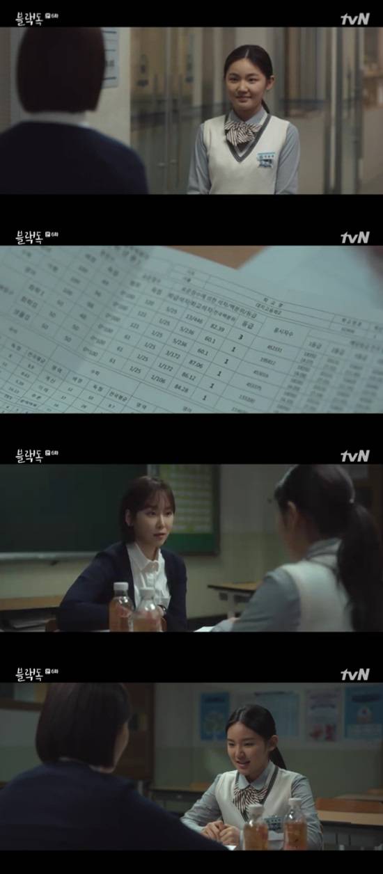 고하늘은 “졸업해봐 더 힘들지. 그런데 유라는 잘할 거야. 야무지니까”라고 응원했고, 진유라는 “제 이름 외우셨어요?”라며 감격했다. 고하늘은 “응. 우리 반이잖아”라고 답하며 웃었다. 고하늘과 진유라가 따뜻한 스승과 제자의 모습을 보였다. (사진=tvN 월화드라마 ‘블랙독’ 캡처)