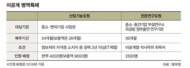국내 한 스타트업(신생 벤처기업)에서 개발자로 일하고 있는 A씨. 그는 미국 한 유명 대학에서 이공계 석사를 마치고 스타트업에 합류했다. A씨는 사내 AI(인공지능) 프로젝트를 총괄했다. A씨는 열정적으로 연구했고 때론 밤을 새웠다. 대신 다음 날 오전엔 쉬었다. 유연근무제를 도입한 스타트업에선 문제가 되지 않았다. 문제는 그가 이른바 '병특(병역특례)'으로 들어온 전문연구요원이라는 것. 병역법을 따르는 군인 신분으로 '하루 8시간 근무'를 지켜야 했다. 결국 직원 몇이 A씨가 '불법 특혜'를 누린다며 회사에 문제를 제기했다. 그러나 돌아온 인사 담당자의 답은 간결했다. "병특 모시기가 얼마나 힘든데, 눈 좀 감아줍시다."