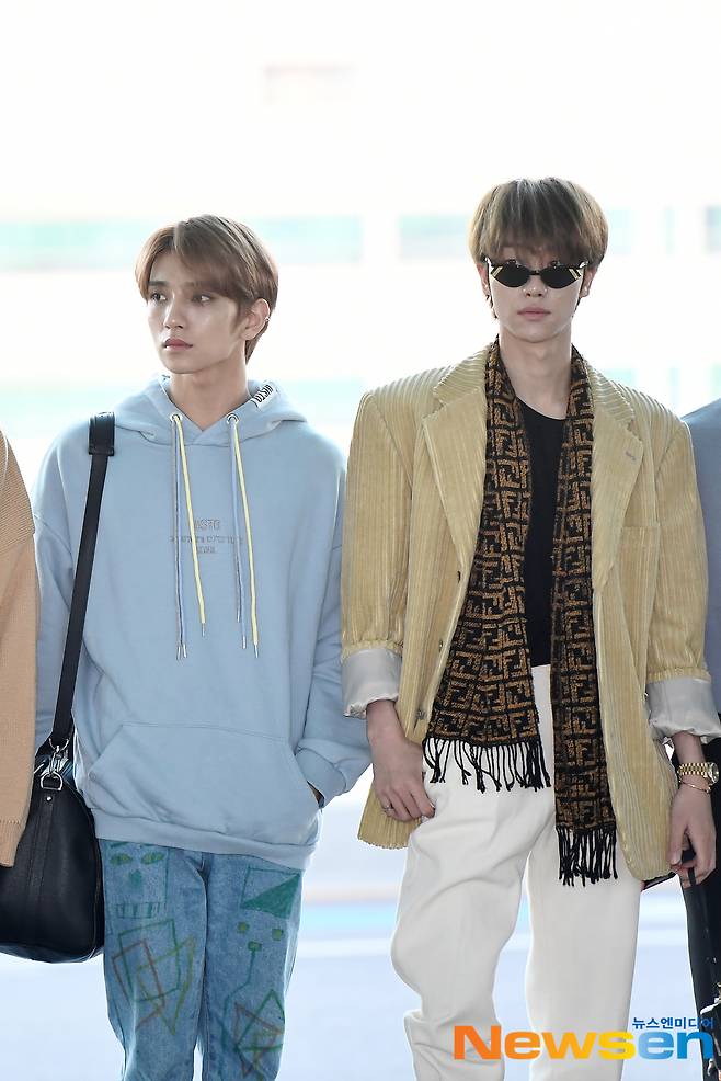 세븐틴(Seventeen) 멤버 조슈아와 디에잇이 태국 방콕으로 출국하고 있다.