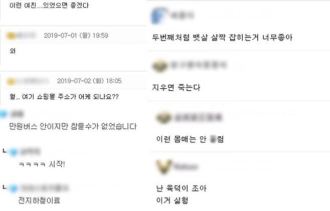 온라인 커뮤니티를 통해 퍼지는 쇼핑몰 후기 사진들은 다른 게시글에 비해 조회수가 2배 이상 높은 편. 댓글 수가 150개에 달하는 글도 있다. 하지만 이를 문제 삼거나 비판하는 댓글은 찾아보기 힘들다. 오히려 해당 쇼핑몰 링크 공유를 요청하거나 "내 여자도 아닌데 보기 좋으면 장땡"이라고 말하는 누리꾼도 있다.
