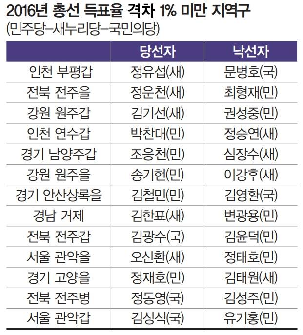 20대 총선 1% 차이 선거구는 내년 총선도 초박빙?