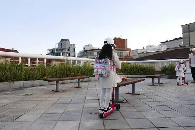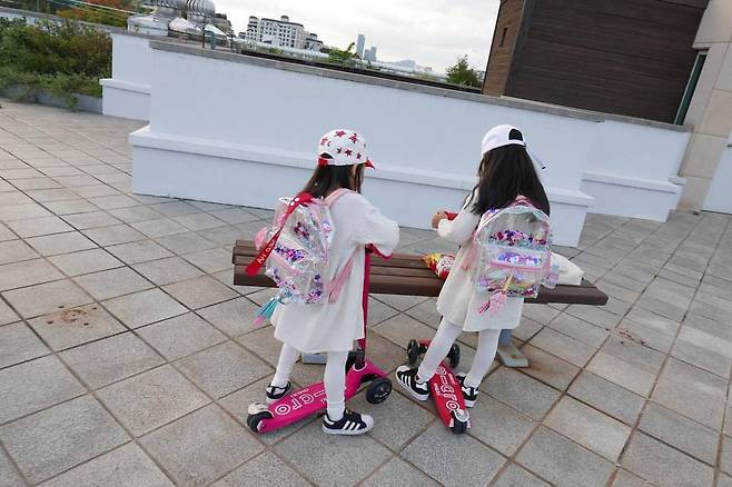 사진 속 박솔미 딸은 한재석과 다정하게 꽃밭을 보고 있다. 이어 킥보드를 타며 사랑스러운 뒤태를 보여줬다.