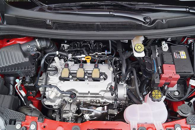 동력계는 3기통 1.0ℓ 에코텍 엔진이다. 최고 75마력과 최대 9.7㎏·m의 힘을 발휘하며 5단 수동변속기와 맞물린다. 3기통 엔진이라 엔진룸에서는 제법 진동이 발생하는 편이지만 실내에서는 아주 크게는 느껴지진 않는다. 중립상태에서 가속 패달을 밟으면 엔진반응은 다소 굼뜬 편이다. 경사로에선 밀림방지장치가 적용돼 경사로에서 전진이나 후진 시 약 3초간 브레이크를 잡아준다.