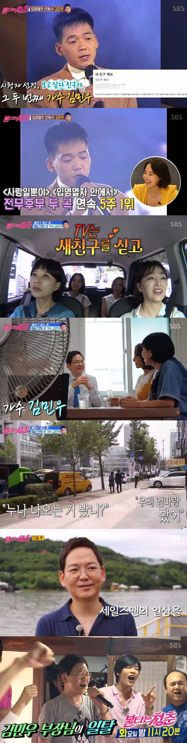 두 번째는 가수 김민우였다. 1990년 불후의 명곡 '사랑일뿐야'와 같은 해 또 다른 히트곡 '입영열차 안에서'로 KBS '가요톱텐' 전무후무 두 곡 연속 5주 1위에 올랐던 김민우. 현재 자동차 세일즈맨으로 전업한 그는 다소 쉽게 찾았다. 김민우와 친분이 있던 김혜림이 찾아 나섰고, 김민우는 김혜림을 보고 반가움을 표했다. 김혜림은 이야기를 하던 중 자연스럽게 '불청' 이야기를 꺼냈다. 이후 멀리서 포착된 모습이 아닌 청춘들과 함께 노래를 부르는 김민우의 모습이 공개되며 새 친구 합류를 알려 반가움을 자아냈다.