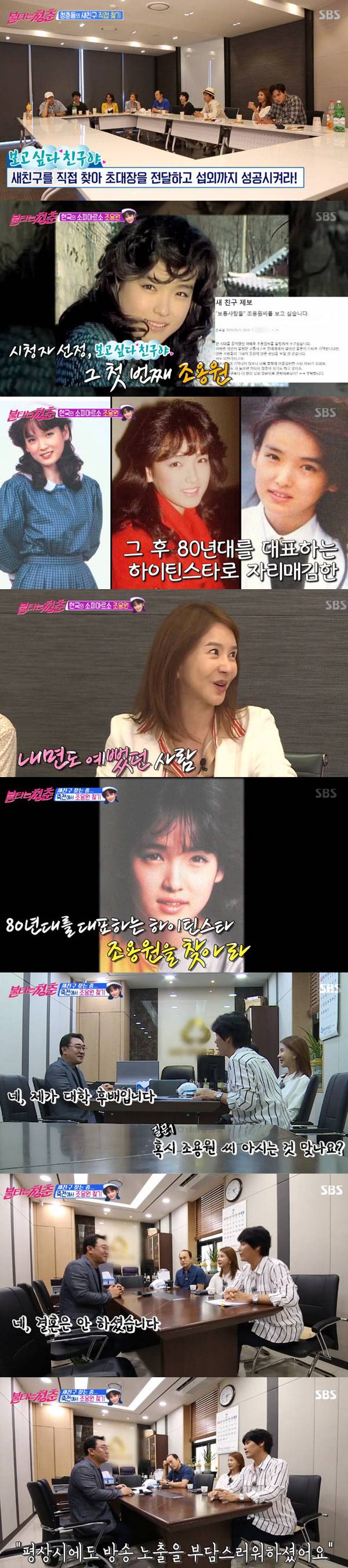 그러나 제작진도 조용원의 근황을 알아내지 못한 상황. 며칠 뒤 김광규와 최성국, 강문영이 조용원을 찾아 나섰다. 유일한 단서는 댓글 제보였다. 사막에서 바늘찾기라 생각했지만, 의외로 쉽게 풀렸다. 무작정 찾은 죽전 카페 거리에서 조용원이 한 카페 단골이라는 사실과 카페 사장님을 통해 조용원의 지인을 만날 수 있었다. 조용원 지인은 "제가 대학 후배다. 한국에 계신다. 한달에 한 번 정도 연락을 하고 지낸다"면서 "결혼은 안 하셨다"고 말했다. 그러나 평상시에도 방송 노출을 부담스러워한다는 조용원. 과연 조용원을 '불청'을 통해 만날 수 있을까?