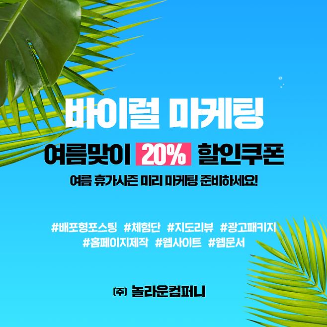 ㈜놀라운컴퍼니, 여름맞이 바이럴 마케팅 20% 할인 이벤트 실시