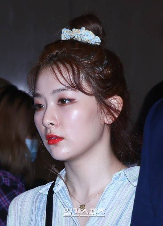 그룹 레드벨벳의 슬기가 30일 밤 홍콩에서의 일정을 마치고 인천국제공항을 통해 입국하고 있다.