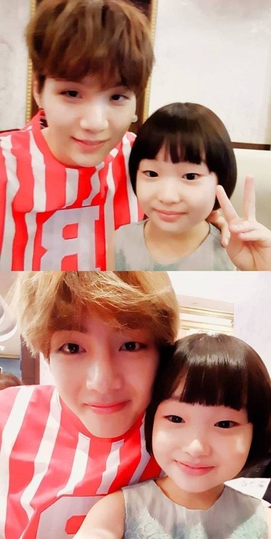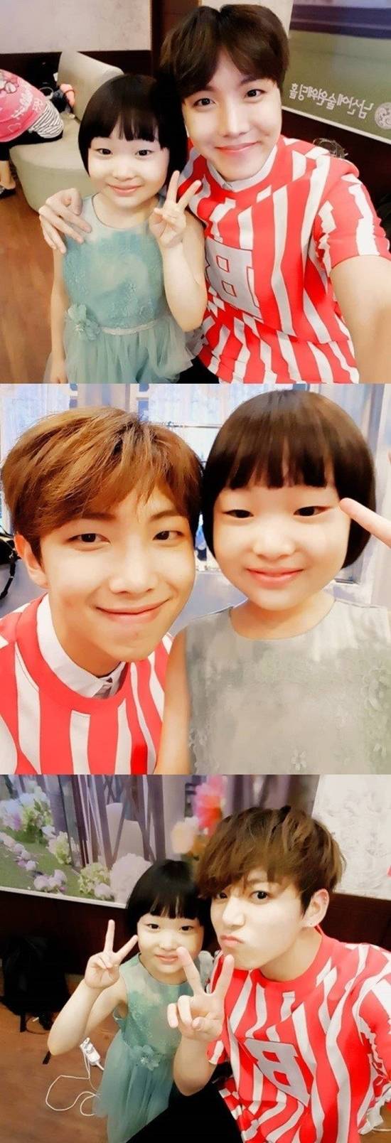 공개된 사진 속 이한서는 방탄소년단 일곱 멤버들과 각각 인증샷을 찍고 있다. 이한서의 깜찍한 모습과 멤버들의 훈훈한 비주얼이 눈길을 사로잡는다.