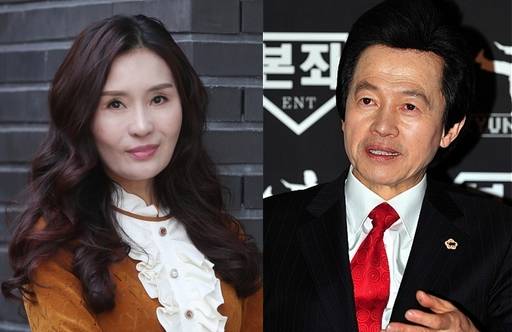 트로트 가수 최사랑(사진 왼쪽)이 허경영(〃 오른쪽) 국가혁명배당금당 대표와 “사실혼 관계였다”고 주장한 가운데, 허경영 측이 “위자료를 받아내기 위한 거짓 주장”이라고 반박했다.