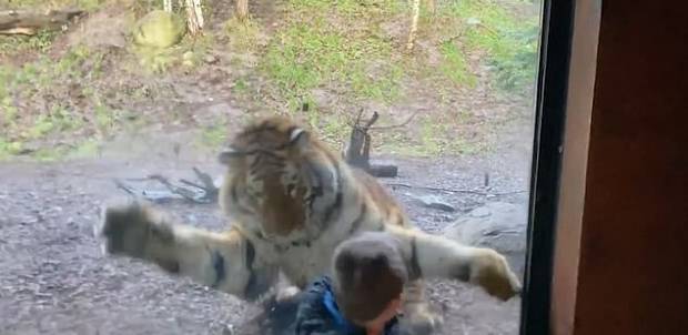 22일(현지시간) 아일랜드 더블린의 한 동물원에서도 유리벽에 갇힌 호랑이 한 마리가 어린이 관람객을 향해 달려들며 사냥 본능을 드러내 충격을 줬다. 당시 션이라는 이름의 어린이는 호랑이 우리 앞에 앉아 카메라를 든 아버지를 향해 미소를 짓고 있었다.