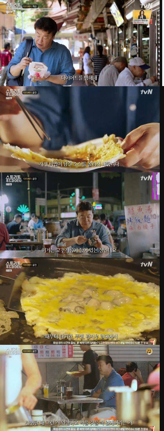 백종원은 "명나라 때 청나라로 바뀌면서 타이완으로 넘어온 장군이 있는데 네덜란드가 타이완을 점령할 때 음식도 다 없앴다, 그때 구할 수 있던 것이 굴, 그때부터 타이완, 푸젠, 광저우 일대에서 굴전을 먹기 시작했다는 설이 있다"며 "어떤 음식이 유행할 땐 꼭 이유가 있는 것이 재밌다"고 흥미로워했다.